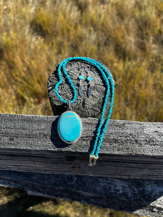 Turquoise Earrings & Necklace - Large Oval
